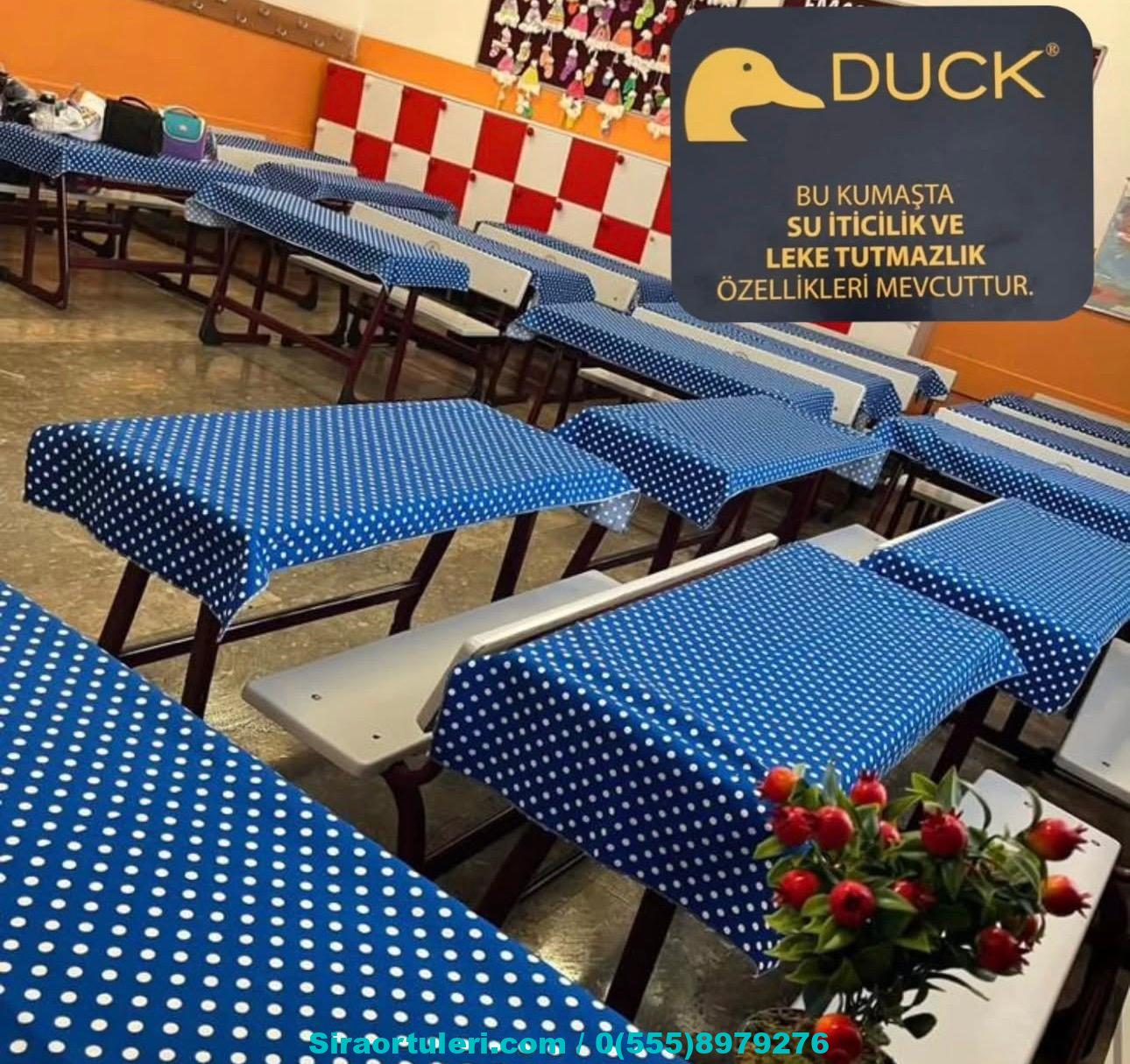 DUCK KETEN SIRA ÖRTÜSÜ MAVİ PUANLI