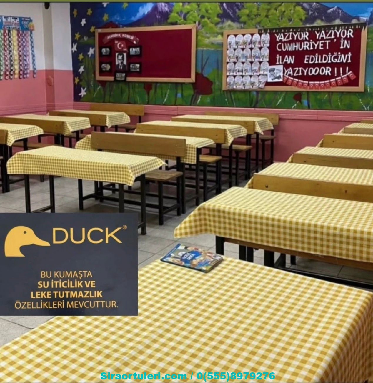 DUCK KETEN SIRA ÖRTÜSÜ SARI KARELİ